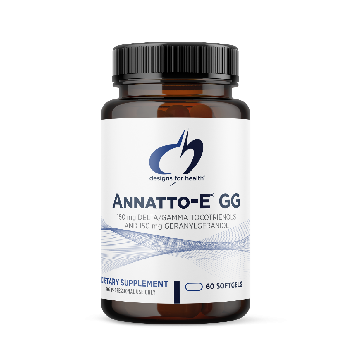 Annatto-E™ GG is a combination of two ingredients per softgel: 150 mg of annatto tocotrienols, a unique tocopherol-free, tocotrienols-only product featuring tocotrienols sourced from the annatto tree, along with 150 mg of geranylgeraniol (GG), a compound that plays critical roles in numerous biological processes affecting organs and tissues throughout the body.