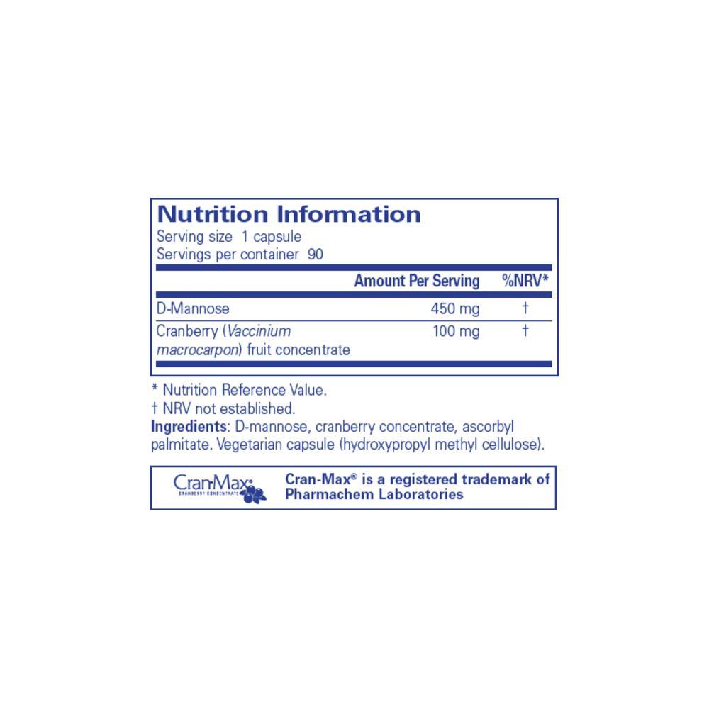 Cranberry/d-Mannose By Pure Encapsulations contains a combination of cranberry and D-mannose, which can help to prevent or manage a urinary tract infection (UTI) or cystitis, which is bladder inflammation.