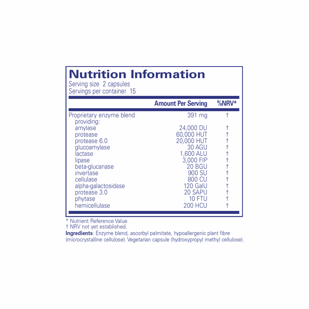 Digestive Enzymes Ultra contains a high-strength, broad-spectrum mixture of vegetarian digestive enzymes. This comprehensive formula provides enzymes that are involved in the digestion of protein, carbohydrate, fat, fibre and lactose.