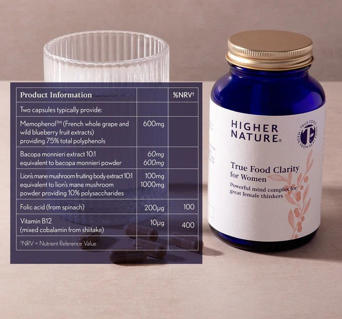 This hard-working formula blends 6 naturally sourced and richly bioavailable nutrients to help maintain mental clarity. For top tier natural support powered by scientifically proven and patented MemophenolTM, targeted mushroom lion's mane and traditional nootropic Bacopa monnieri, with added True Food® folate and Vitamin B12 sourced from spinach and shiitake mushroom.